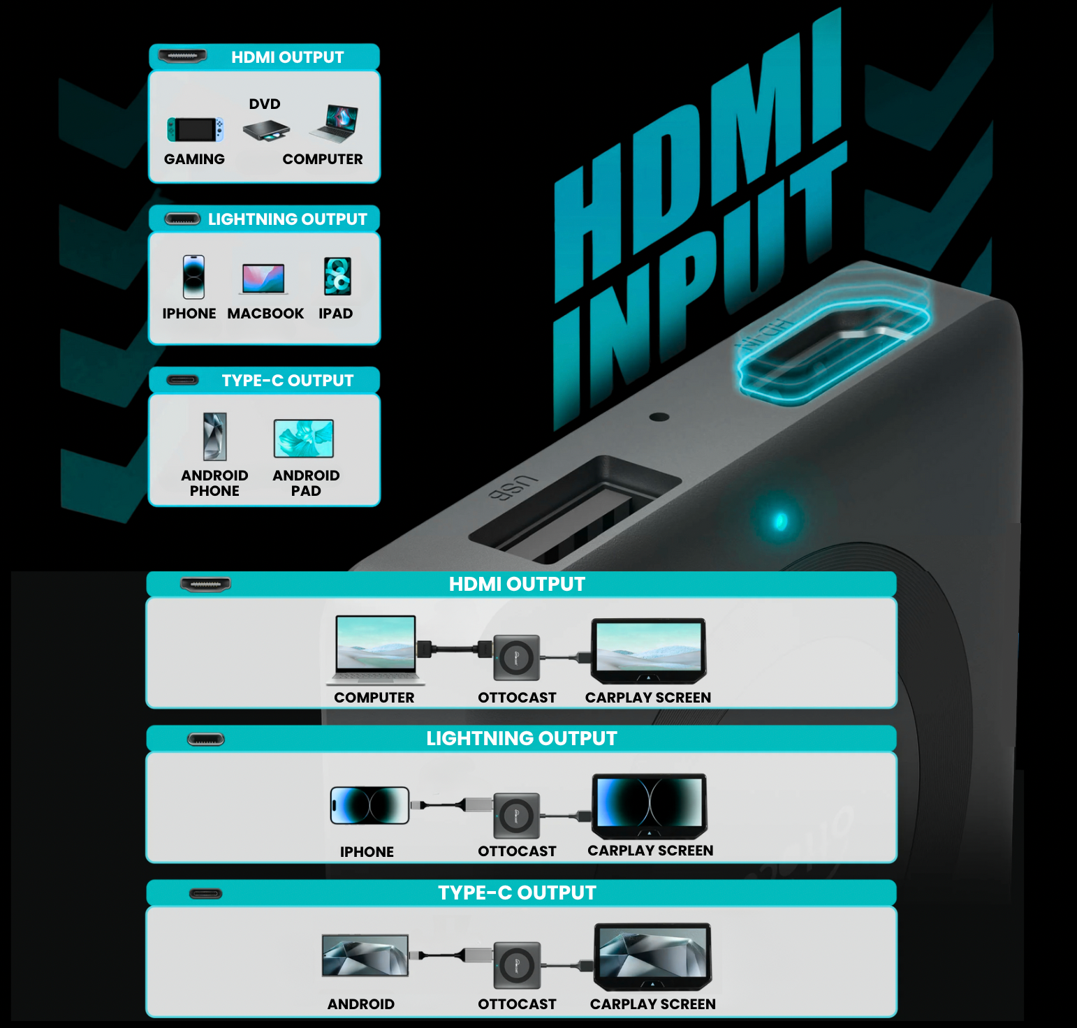 Opening the door to true versatility! With support for a wide range of HDMI devices and universal compatibility with CarPlay and Android Auto, you're no longer limited by what your car can do. Connect effortlessly to the tech you love — anytime, anywhere